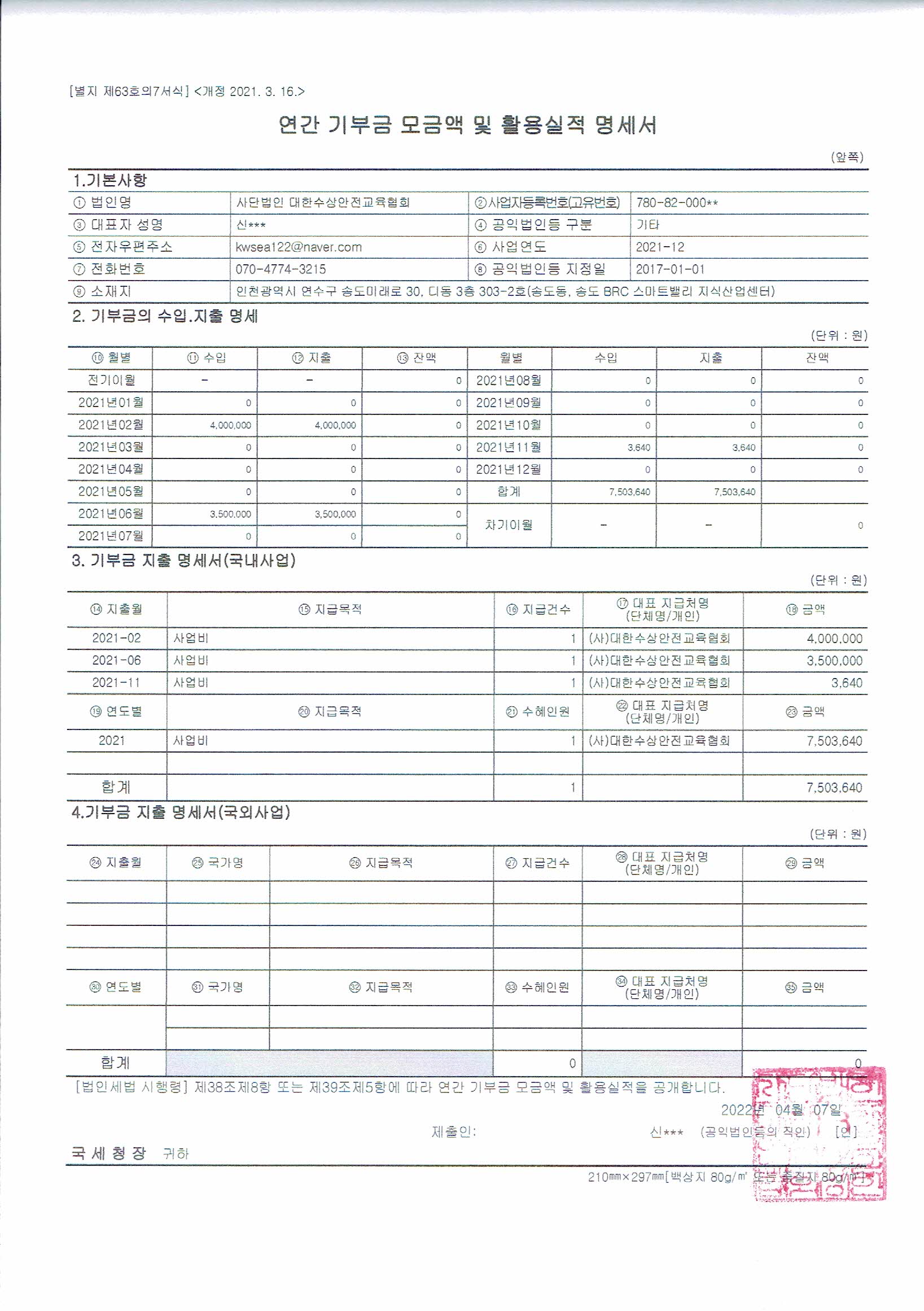 2021³âµµ ¿¬°£ ±âºÎ±Ý ¸ð±Ý¾× ¹× Ȱ¿ë½ÇÀû ¸í¼¼¼