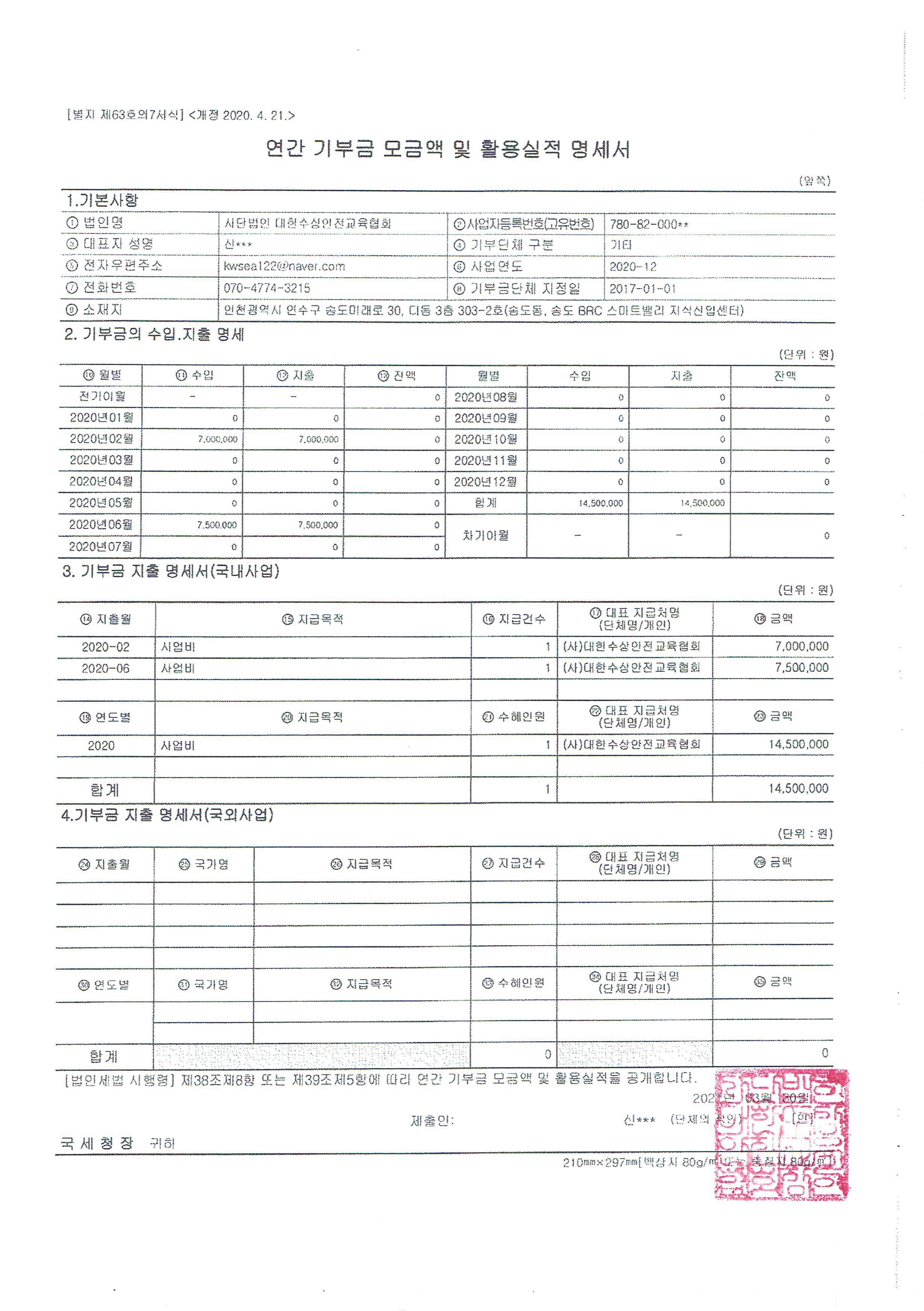 Á¦¸ñ 2020³âµµ ¿¬°£ ±âºÎ±Ý ¸ð±Ý¾× ¹× Ȱ¿ë½ÇÀû ¸í¼¼¼­