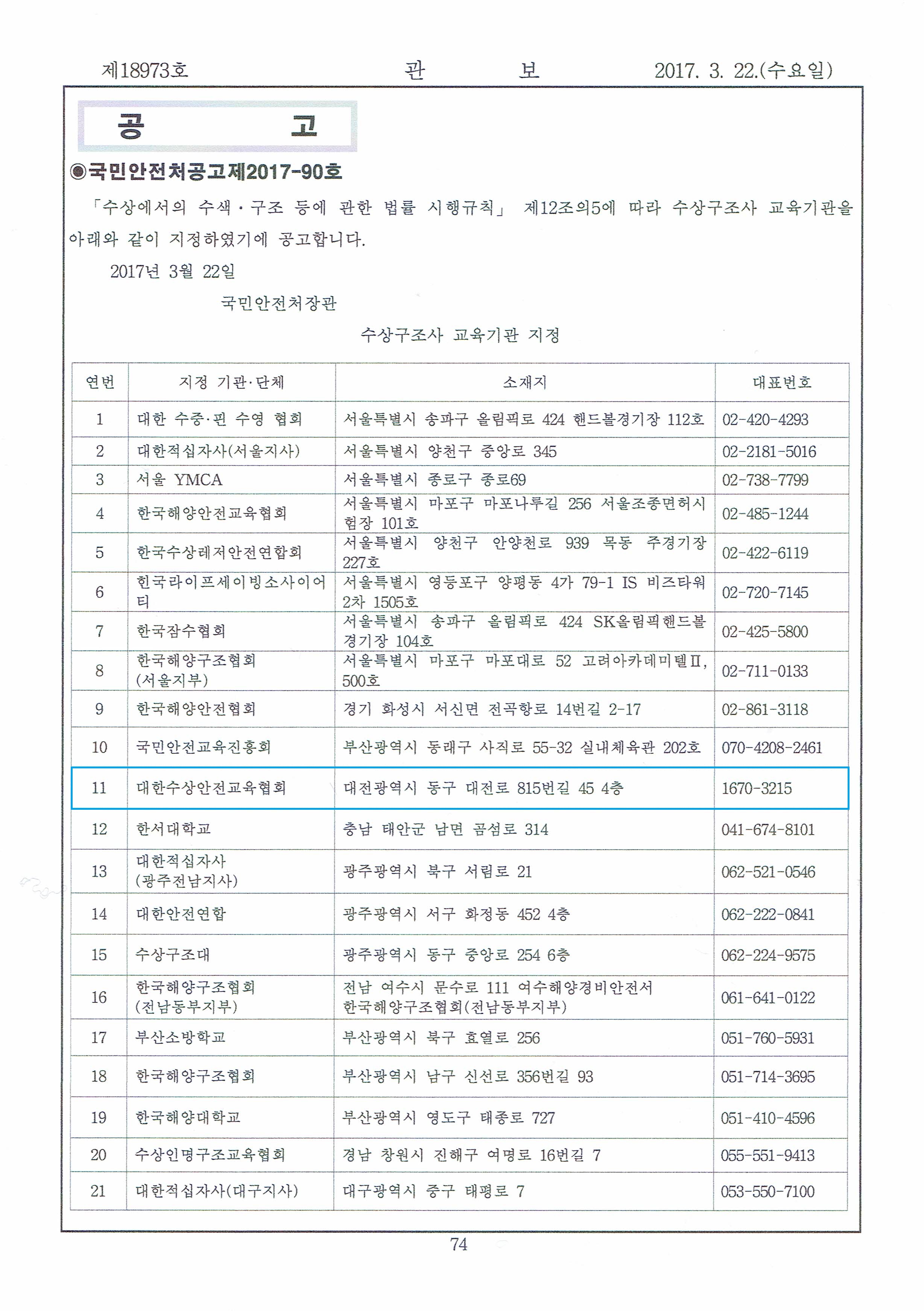 (»ç)´ëÇѼö»ó¾ÈÀü±³À°Çùȸ ¼ö»ó±¸Á¶»ç ±³À°±â°ü ÁöÁ¤ ¾Ë¸²