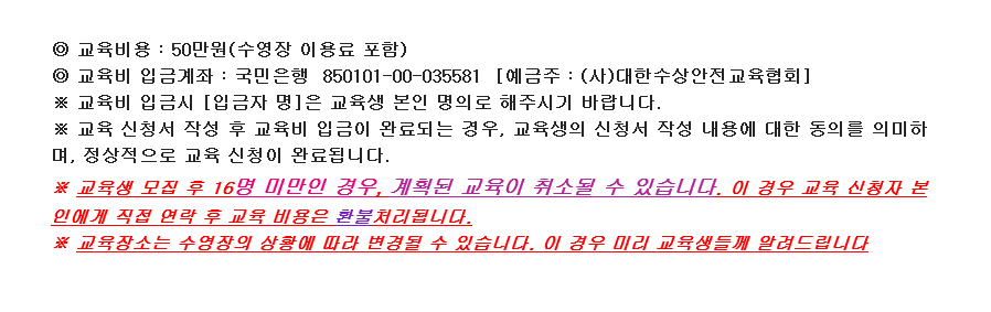 ±³À°½Åû¼ ÀÛ¼º ¿Ï·á ÈÄ ±³À°ºñ¸¦ ³³ºÎÇØ ÁÖ¼Å¾ß ±³À° Á¢¼ö°¡ ¿Ï·áµË´Ï´Ù. ±³À°ºñ´Â ½Åû¼ ÀÛ¼ºÀÏ Æ÷ÇÔ 2ÀÏ À̳»¿¡ ÀÔ±ÝÇØ ÁÖ¼Å¾ß Çϸç, ÀÌ ±â°£µ¿¾È ÀÔ±Ý È®ÀÎÀÌ µÇÁö ¾Ê´Â °æ¿ì¿¡´Â ½ÅûÀÌ Ãë¼ÒµÉ ¼ö ÀÖ½À´Ï´Ù.